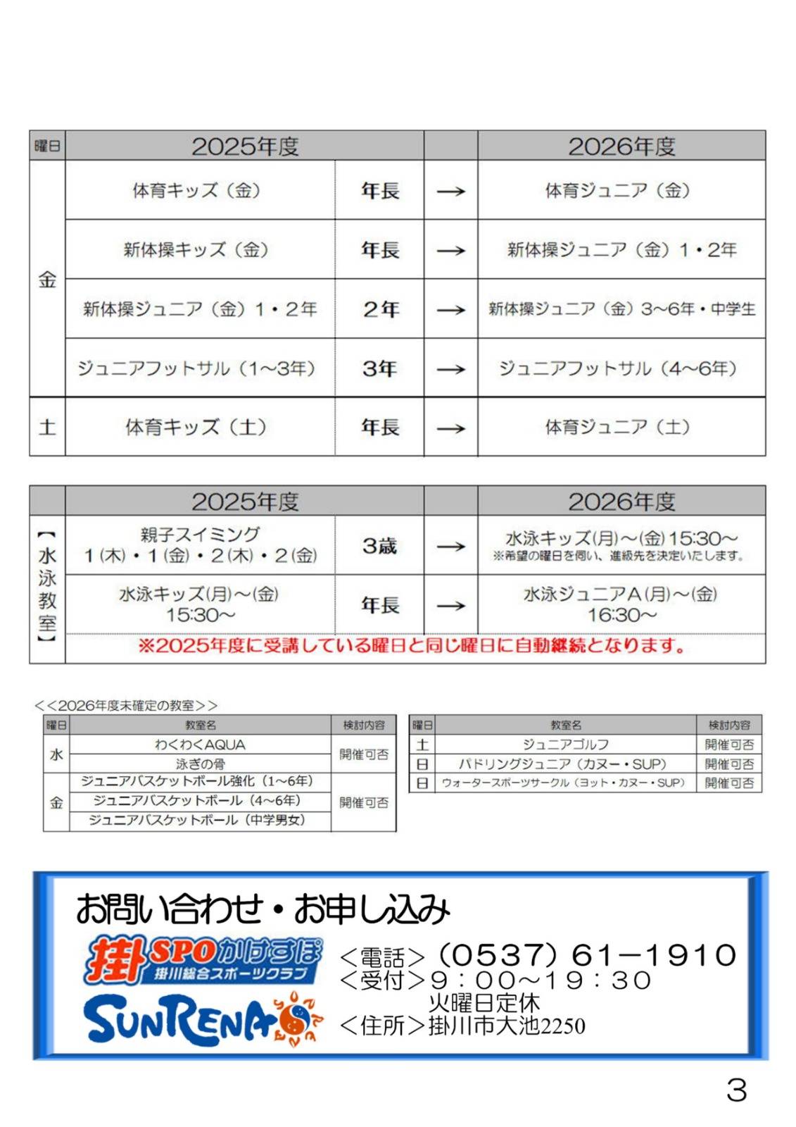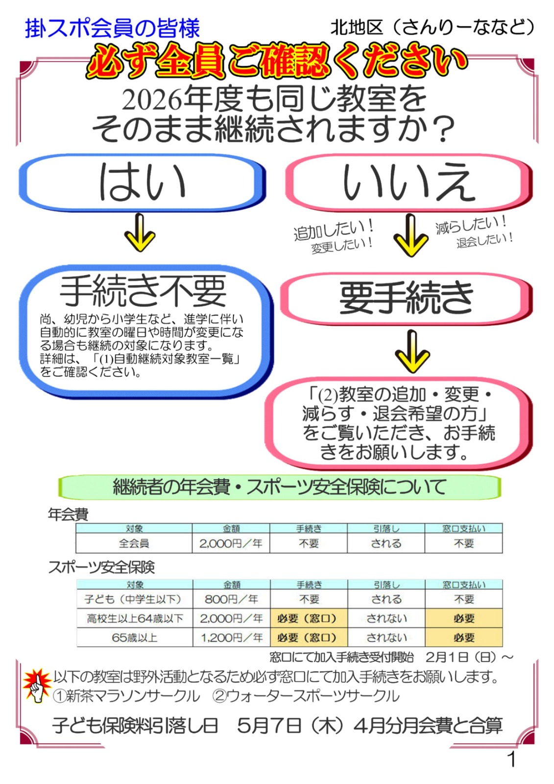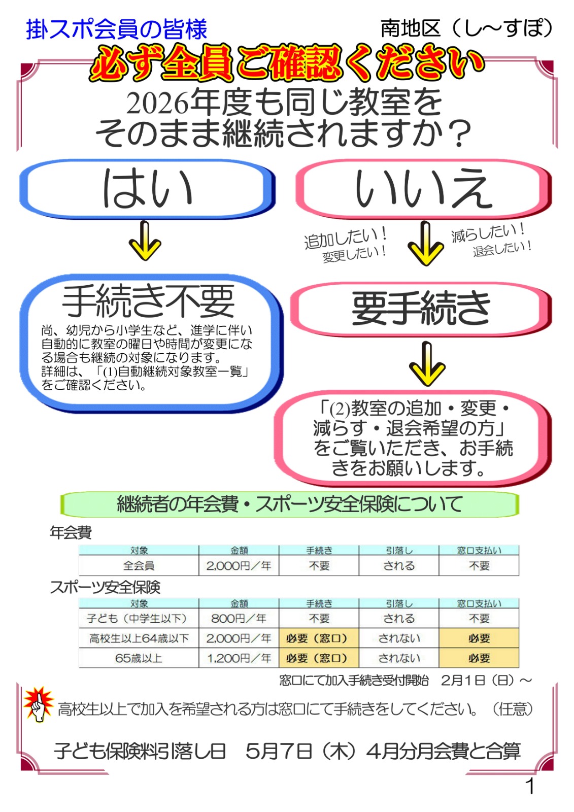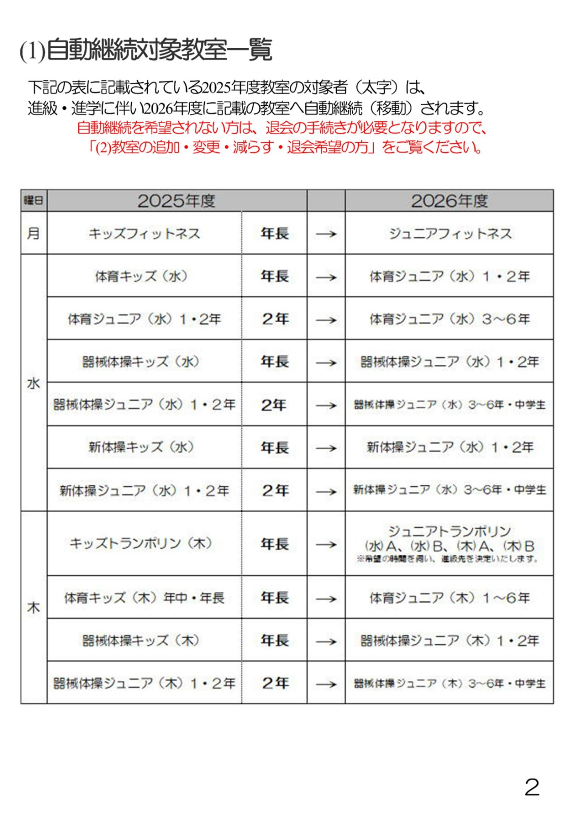 2026年度も同じ教室をそのまま継続する場合は、手続き不要となります。