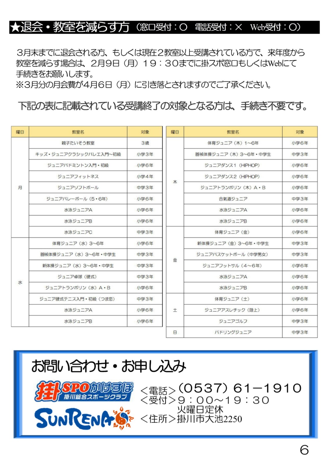 未定な教室については決まり次第、きずなネットにてご案内いたします。