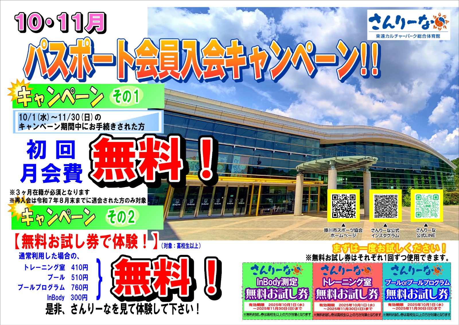 - 10・11月 パスポート会員入会キャンペーン実施中!