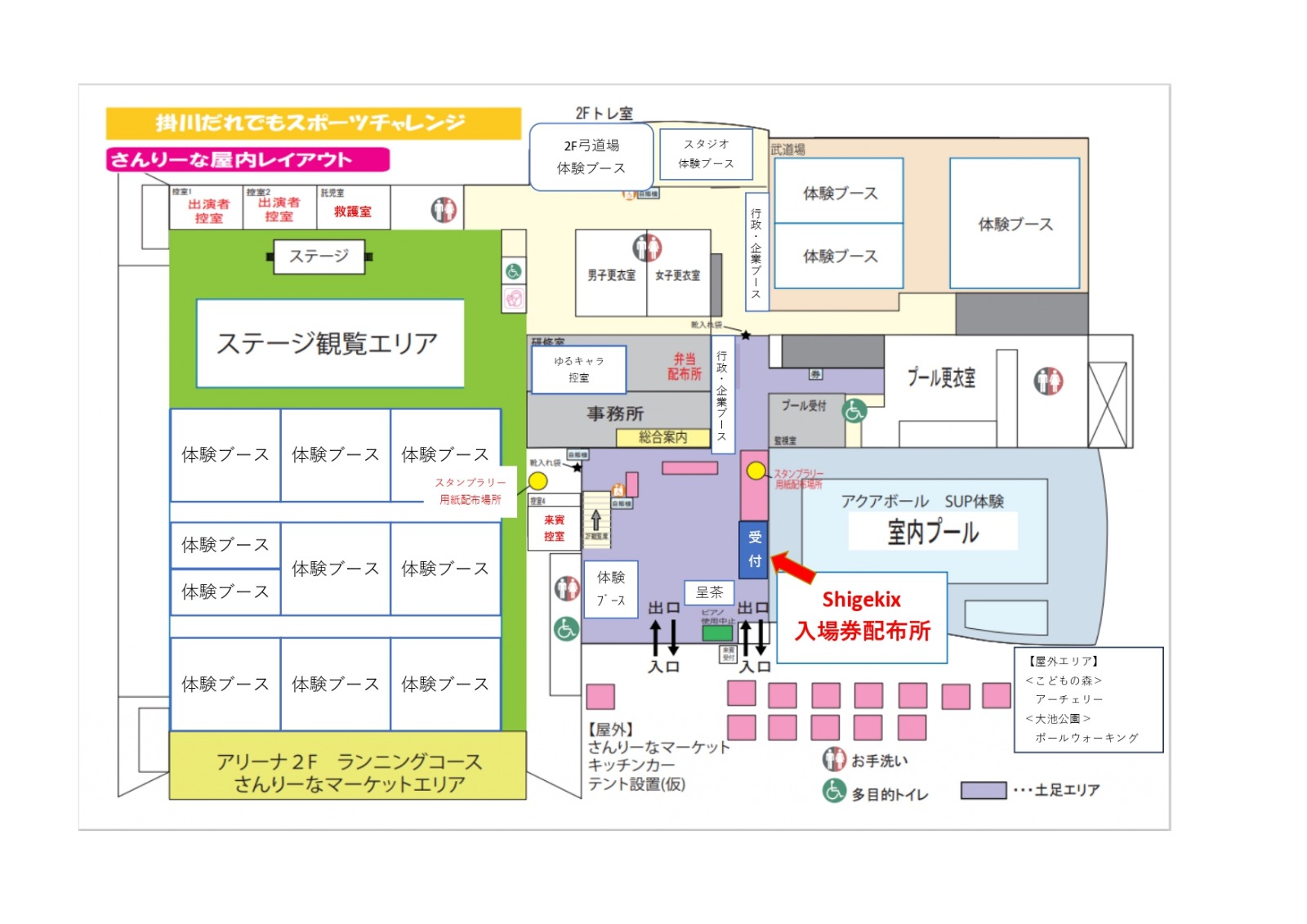 アリーナ出入口ステージ側の「Shigekix]入口にお越しください。(レイアウト図参照)