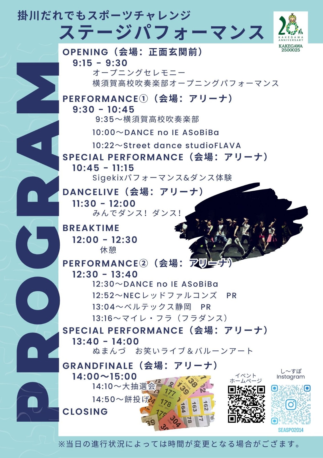 ステージパフォーマンス(し~すぽ会場)タイムテーブル