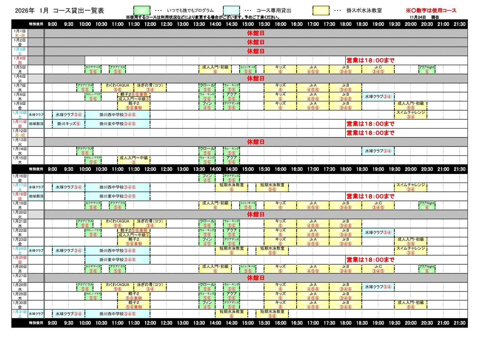 さんりーなプール令和8年1月コース貸出一覧・日程
